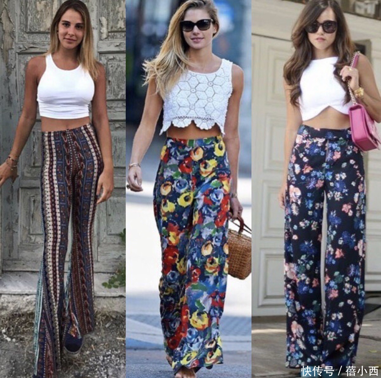 一件露脐上衣搭配上印花元素的阔腿裤排列三色碟,新2皇冠会员显瘦不说这便是妥妥的一枚前锋达东说念主呀,雪纺的料子很合适炎热的夏天穿。