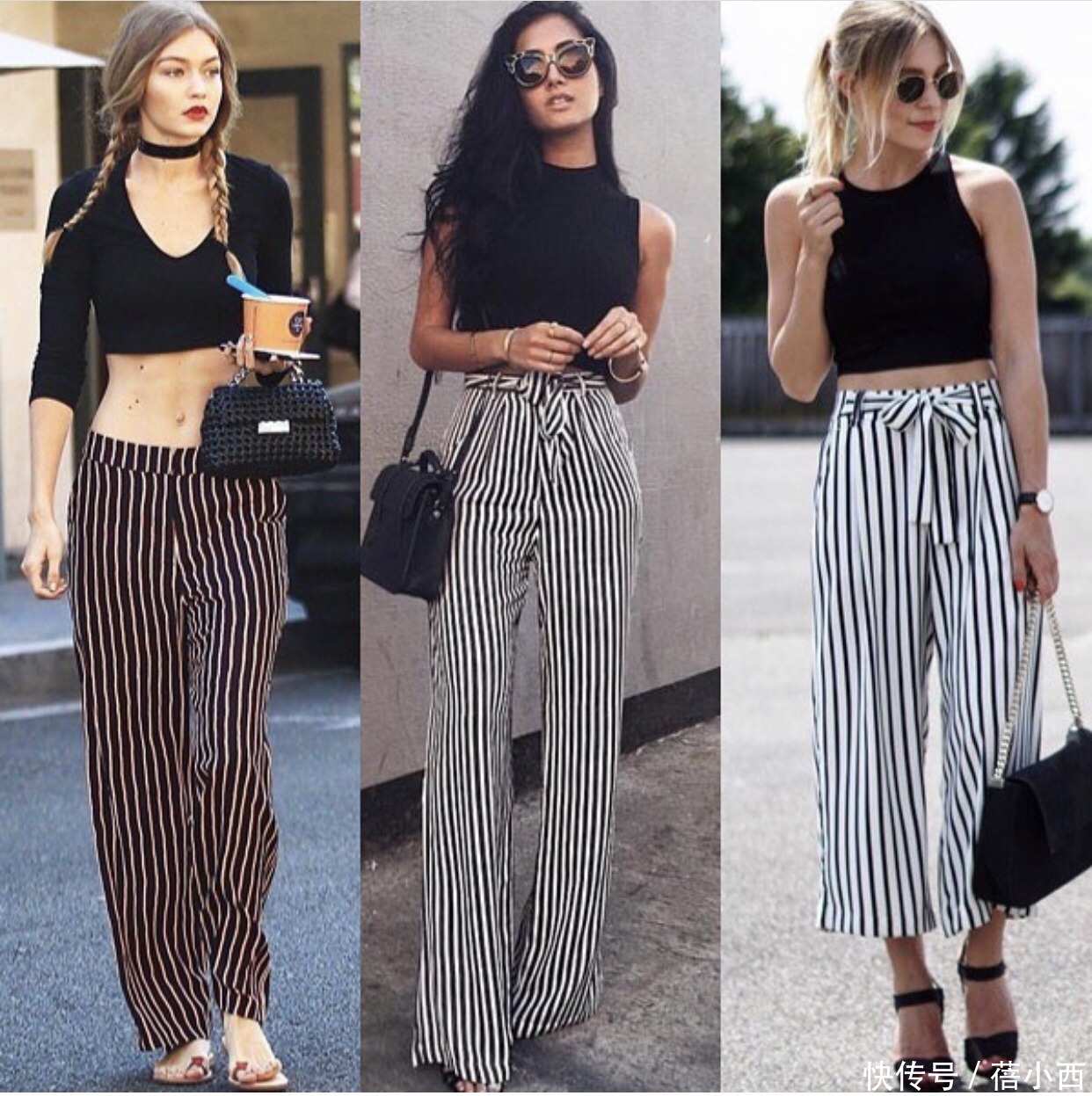 认为淡色系阔腿裤不够显瘦,那就一定要来尝试一下条纹元素的阔腿裤,咱们王人知说念竖条纹显瘦。